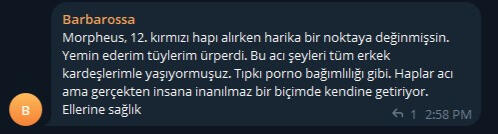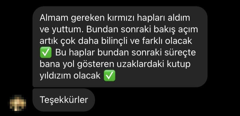 bir türlü anlayamıyordum.Daha sonra kırmızı hap ile tanıştım.İlk kez yuttuğum için harika hissediyordum